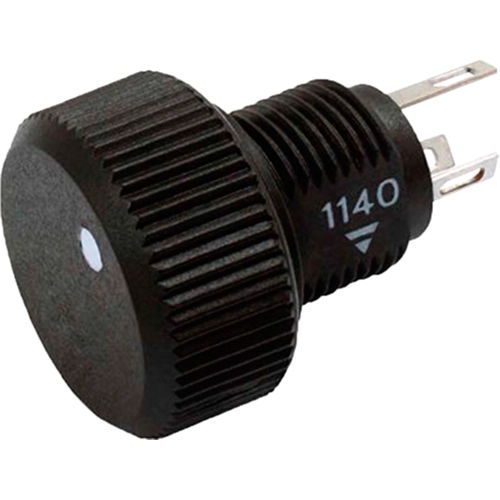 Incorporating a cermet potentiometer, this knob features a distinctive design. The back side of the panel is solely occupied by the mounting hardware and terminals, ensuring a minimal required clearance.