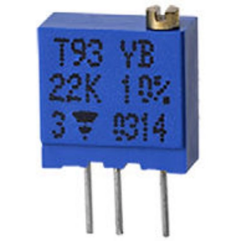 The T93 is a small size trimmer. 3/8 inches in size. Answers PC board mounting requirements. Excellent operational stability is provided by the use of a cermet element.