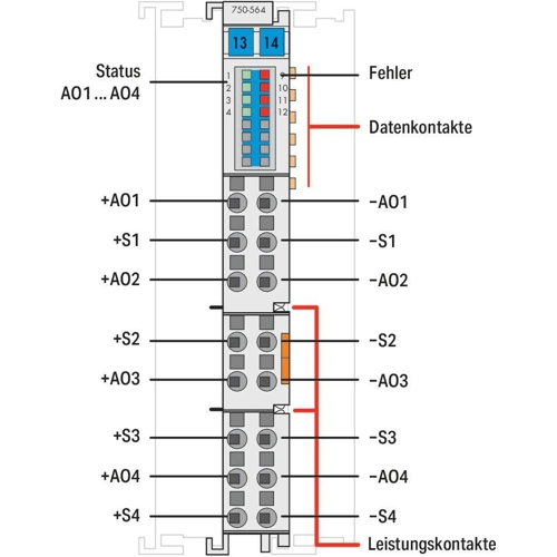 Analog module for series 750, Outputs: 4, (W x H x D) 12 x 100 x 69 mm, 750-564