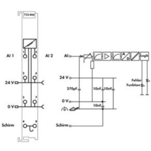 Analog module for series 753, Inputs: 2, (W x H x D) 12 x 100 x 69.8 mm, 753-466