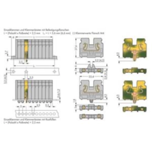 Easily, quickly and safely connect conductors with this through terminal block 869-208. Our mini rail-mount terminal blocks are perfect for tight spaces thanks to their compact design. You can also choose from a range of mounting and actuation variants for unparalleled flexibility, making it easy to select the ideal mini terminal block for each use. Our mini rail-mount terminal block is rated for 500 V and is designed to handle a rated current of up to 24 A. Strip lengths must be between 6 mm and 7 mm when connecting conductors to this through terminal block. This product incorporates conductor terminals and utilizes CAGE CLAMP. Our reliable and maintenance-free CAGE CLAMP connection makes it easy to connect all conductor types without having to prepare the conductor. For example, you don't need to crimp ferrules. This through terminal block is suitable for conductor cross sections ranging from 0.08 mm² to 2.5 mm². Up to eight potentials / eight poles can be connected to this terminal strip using sixteen clamping points on one level. The gray housing is made of polyamide (PA66) for insulation. An operating tool is used to operate this mini rail-mount terminal block. The front-entry wiring allows you to connect copper conductors.