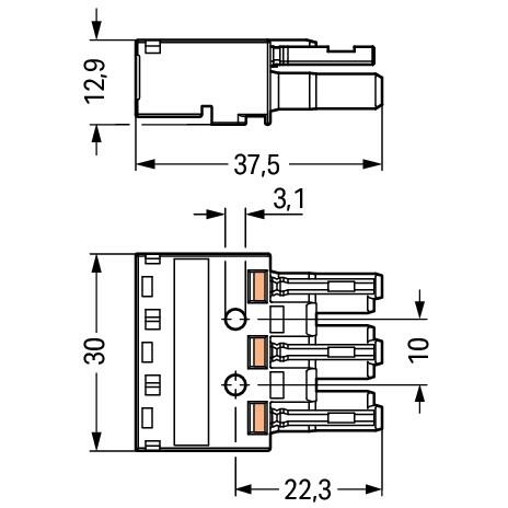 Socket, 3 pole, spring-clamp connection, 0.5-4.0 mm², red, 770-1303