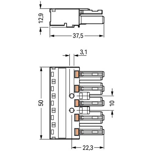 Socket, 5 pole, spring-clamp connection, 0.5-4.0 mm², white, 770-425