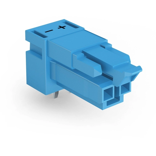 Socket for PCBs, angled, 2-pole, code I, blue.