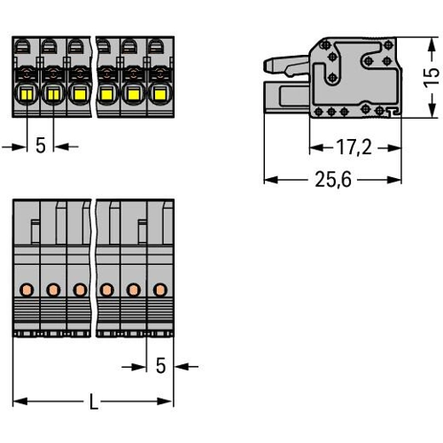 1-wire female connector, 6 pole, pitch 5 mm, gray, 2231-106/102-000