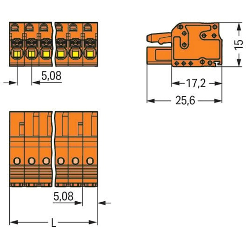 1-wire female connector, 20 pole, pitch 5.08 mm, orange, 2231-320/102-000