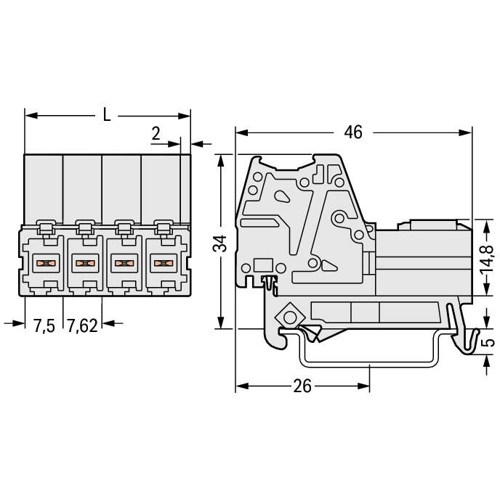 Male connector for mounting on TS 35 5-pole Spacing 7.62 mm / 0.3 in 100 % mismating protected codable light grey
