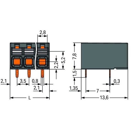 - Conductor connection and mating direction parallel or perpendicular to the PCB