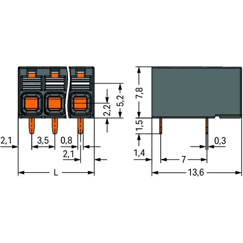 - Conductor connection and mating direction parallel or perpendicular to the PCB