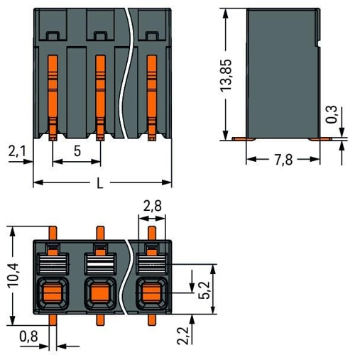 - Conductor connection and mating direction parallel or perpendicular to the PCB