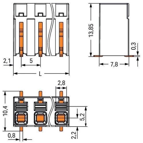 - Conductor connection and mating direction parallel or perpendicular to the PCB