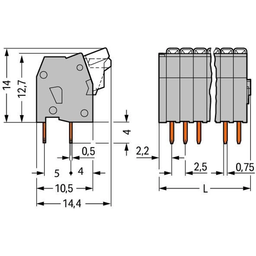 Modular PCB terminal block, Type Wago