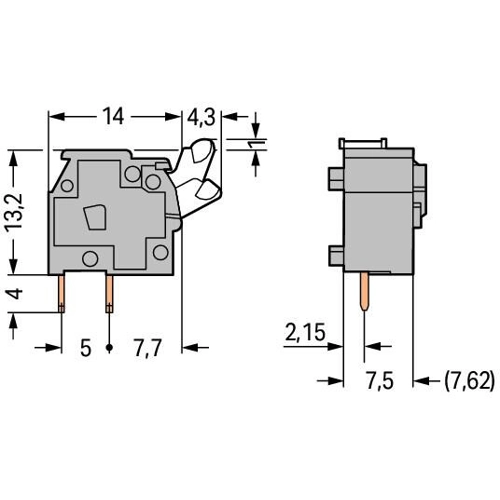 Modular single terminal block with pushbutton 2 solder pins/pole 1-pole Grid spacing 7.5/7.62 mm black