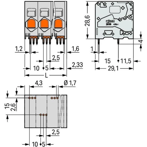 PCB terminal, 2 pole, pitch 10 mm, AWG 18-4, 76 A, push-in cage clamp, black, 2636-1102/020-004