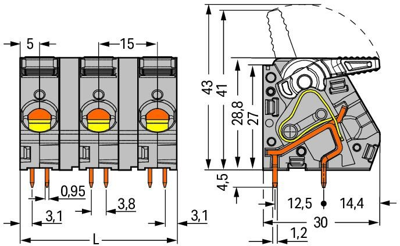 - High-current PCB terminal strips with lever-actuated CAGE CLAMP connection