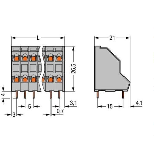 - PCB terminal strips with screwdriver-actuated CAGE CLAMP connection