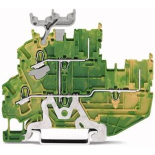 2-conductor/2-pin, double-deck carrier terminal block, 2-conductor/2-pin ground terminal block, 2.5 mm², PE, internal commoning, for DIN-rail 35 x 15 and 35 x 7.5, Push-in CAGE CLAMP, 2,50 mm², green-yellow.