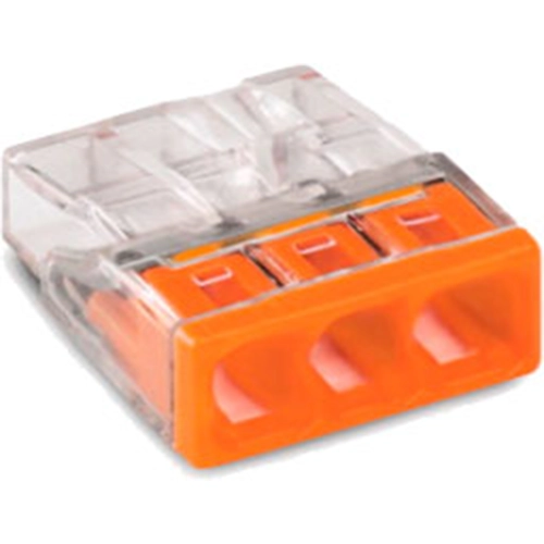 COMPACT splicing connector. for solid conductors, maximum 2.5 mm², 3-conductor, transparent housing, orange cover, surrounding air temperature: maximum 60 °C (T60), 2,50 mm².