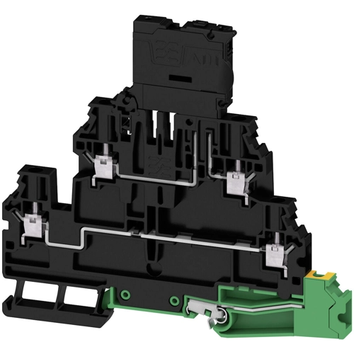 Fuse terminal, Screw connection, black, 4 mm², 6.3 A, 70 V, Number of connections: 5, Number of levels: 3, TS 35.