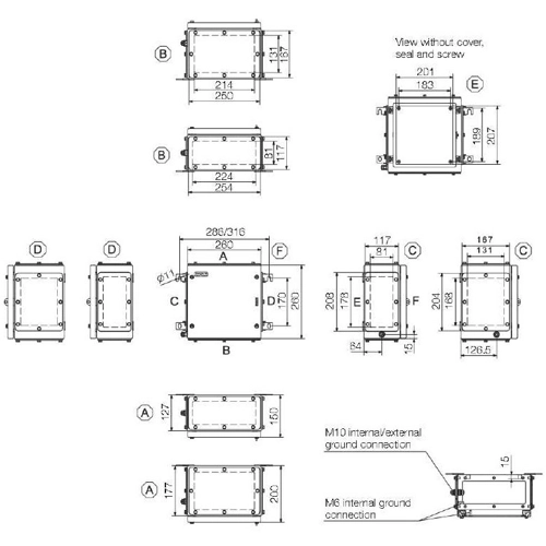 - Earthing stud in the cover and base of the enclosure
