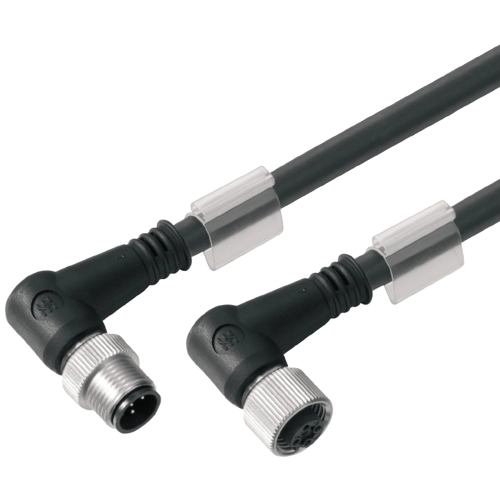 Bus line, M12-plug, straight to M12-plug, angled, PUR, 22 m, black, 1062152200
