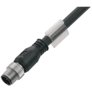 Bus line, M12-plug, straight to open end, PUR, 5 m, black, 1964700500
