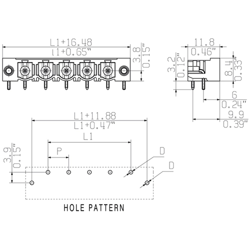 Printed Circuit Board Connector, Solder Flange, THT Solder Termination, 7.62 mm, No. of Poles: 8, 90°, 3.2 mm, Tin Plated, Black, Box