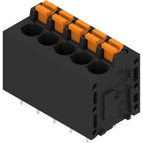 Printed circuit board terminals, 5.00 mm, Number of poles: 5, 180°, Solder pin length (l): 3.5 mm, tinned, black, PUSH IN with actuator, Clamping range, max. : 2.5 mm², Box.