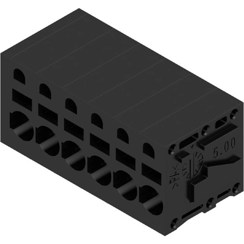 Printed circuit board terminals, 5.00 mm, Number of poles: 6, 90°, Solder pin length (l): 3.5 mm, tinned, black, PUSH IN, Clamping range, max. : 2.5 mm², Box.