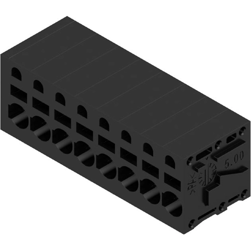Printed circuit board terminals, 5.00 mm, Number of poles: 8, 90°, Solder pin length (l): 3.5 mm, tinned, black, PUSH IN without actuator, Clamping range, max. : 2.5 mm², Box.