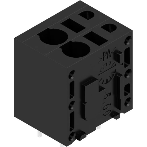 Printed circuit board terminals, 5.00 mm, Number of poles: 2, 180°, Solder pin length (l): 3.5 mm, tinned, black, PUSH IN, Clamping range, max. : 2.5 mm², Box.