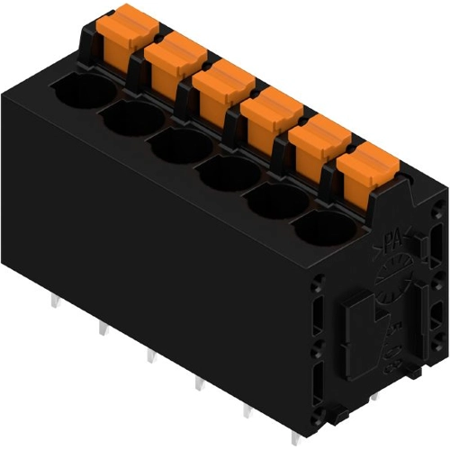 Printed circuit board terminals, 5.08 mm, Number of poles: 6, 180°, Solder pin length (l): 3.5 mm, tinned, black, PUSH IN with push button, Clamping range, max. : 2.5 mm², Box.