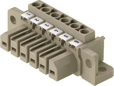 PCB connector, flange, 7.00 mm, no. of poles: 2, silver plated, pebble grey, box