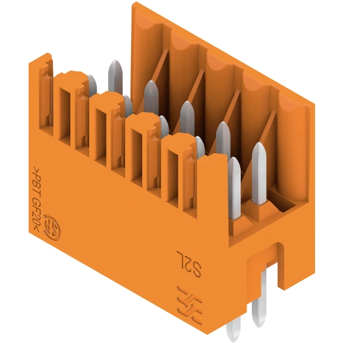 The male header with a pin length of 3.5 mm is designed for wave soldering and is packed in a box. It can be screwed on to the PCB. The male header provides space for labelling and can be coded.