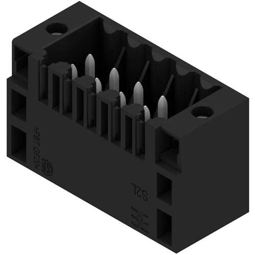 The male header with a pin length of 3.5 mm is designed for wave soldering and is packed in a box. It can be screwed on to the PCB. The male header provides space for labelling and can be coded.