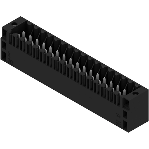 The male header with a pin length of 3.5 mm is designed for wave soldering and is packed in a box. It can be screwed on to the PCB. The male header provides space for labelling and can be coded.