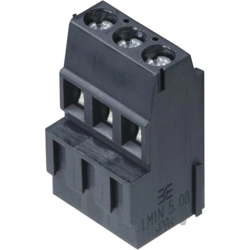 Low and high 1-row PCB terminal with proven clamping yoke connection at 5.08 mm pitch, conductor outlet direction 90°. Suitable for conductor cross-sections up to 2.5 mm².