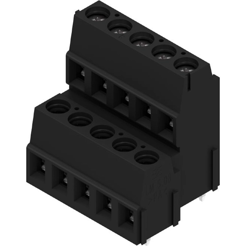 Low and high 1-row PCB terminal with proven clamping yoke connection at 5.08 mm pitch, conductor outlet direction 90°. Suitable for conductor cross-sections up to 2.5 mm².