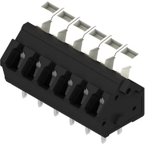 Printed circuit board terminal, 5.00 mm, Number of poles: 6, 135°, Solder pin length (l): 3.5 mm, tinned, black, Tension clamp connection with actuator, Clamping range, max.: 2.5 mm², Box.