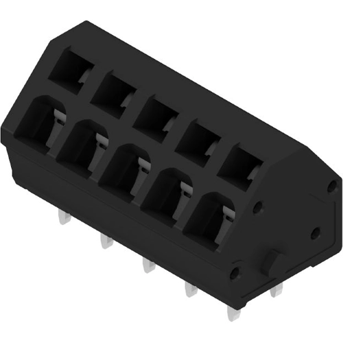 Printed circuit board terminal, 5.00 mm, Number of poles: 5, 135°, Solder pin length (l): 3.5 mm, tinned, black, Tension-clamp connection, Clamping range, max.: 2.5 mm², Box.