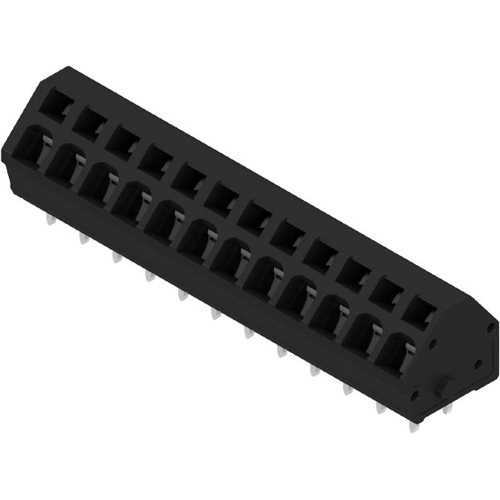 Printed circuit board terminal, 5.00 mm, Number of poles: 12, 135°, Solder pin length (l): 3.5 mm, tinned, black, Tension-clamp connection, Clamping range, max.: 2.5 mm², Box.