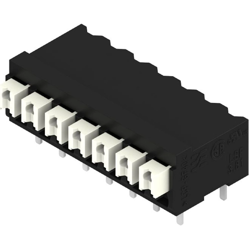 PCB terminal for fully automatic assembly in reflow soldering (SMT), with Push In conductor connection system. Conductor inserted and slider operated in same direction (TOP).