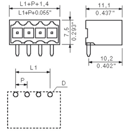 PCB Connector, lateral closed, THT/THR solder termination, 3.50 mm, no. of poles: 17, 90°, 3.2 mm, tinned, black, box
