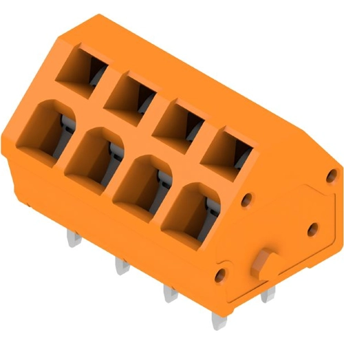 Printed circuit board terminal, 5.00 mm, Number of poles: 4, 135°, Solder pin length (l): 3.5 mm, tinned, orange, Tension-clamp connection, Clamping range, max.: 2.5 mm², Box.