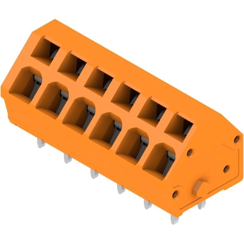 Printed circuit board terminal, 5.00 mm, Number of poles: 6, 135°, Solder pin length (l): 3.5 mm, tinned, orange, Tension-clamp connection, Clamping range, max.: 2.5 mm², Box.