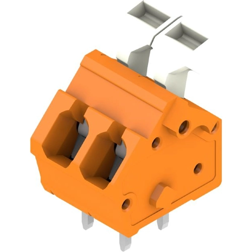 Printed circuit board terminal, 5.00 mm, Number of poles: 2, 135°, Solder pin length (l): 3.5 mm, tinned, orange, Tension clamp connection with actuator, Clamping range, max.: 2.5 mm², Box.