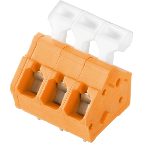 Printed circuit board terminal, 5.00 mm, Number of poles: 3, 135°, Solder pin length (l): 3.5 mm, tinned, orange, Tension clamp connection with actuator, Clamping range, max.: 2.5 mm², Box.