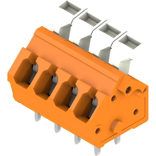 Printed circuit board terminal, 5.00 mm, Number of poles: 4, 135°, Solder pin length (l): 3.5 mm, tinned, orange, Tension clamp connection with actuator, Clamping range, max.: 2.5 mm², Box.