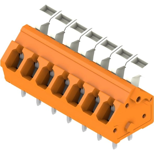 Printed circuit board terminal, 5.00 mm, Number of poles: 7, 135°, Solder pin length (l): 3.5 mm, tinned, orange, Tension clamp connection with actuator, Clamping range, max.: 2.5 mm², Box.