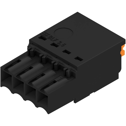 Female header with spring connection (Push in) as a plug-in connection level; used together with male headers in 3.50 mm pitch.